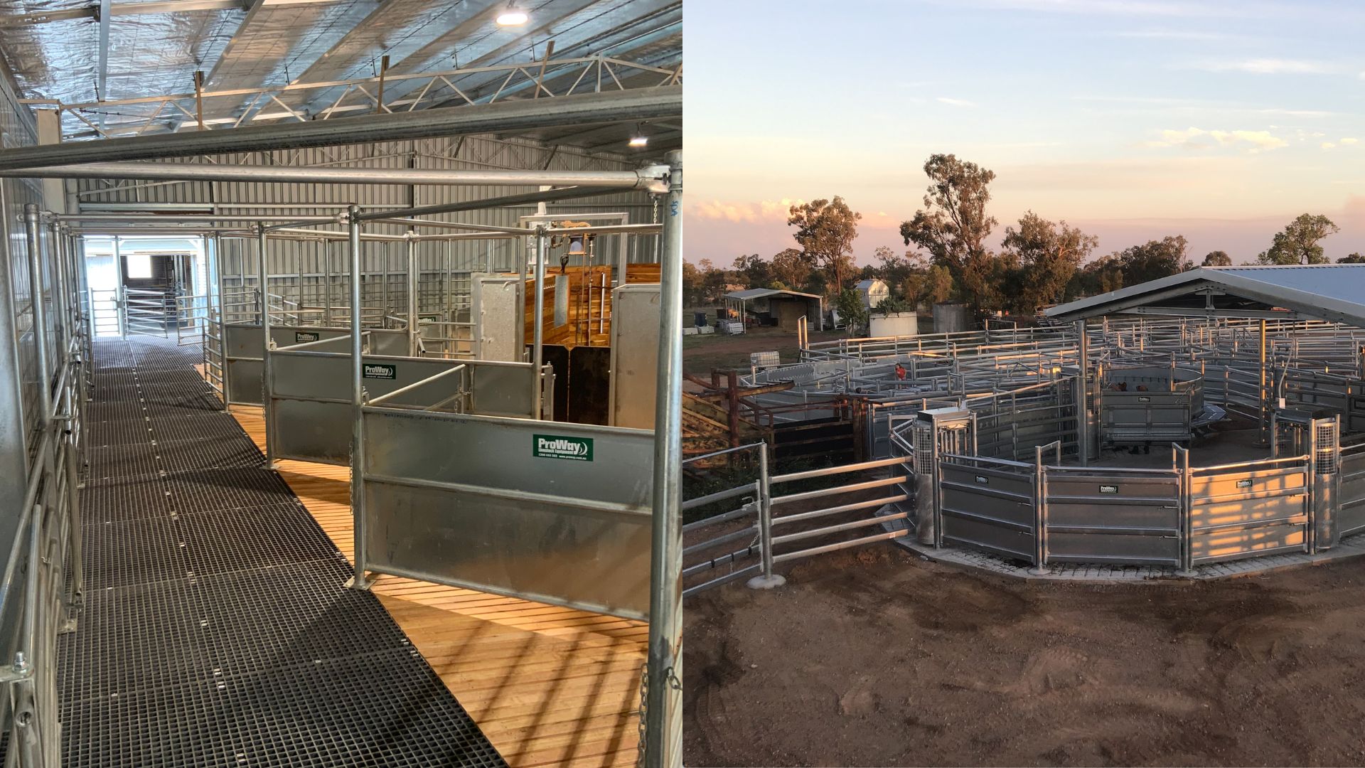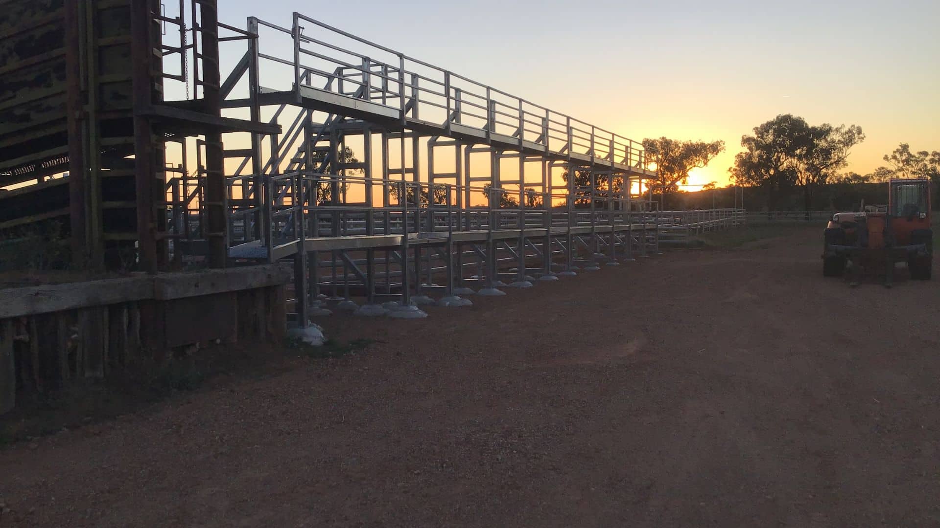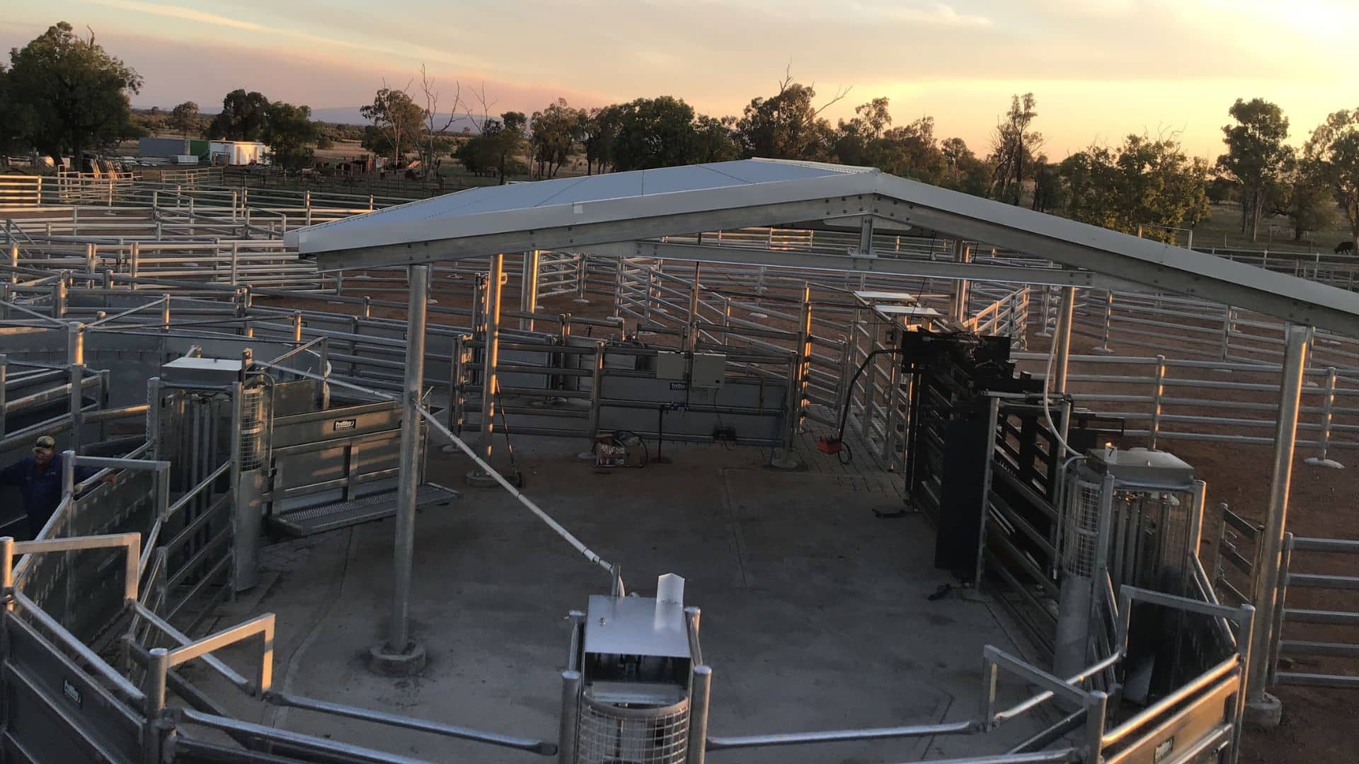 Based deep in Qld cattle country, this large job has the working yard capacity for over 600 head, with further existing extensive holding yards. Our contractors worked methodically through this monster, radiating out from the working area and interfacing into existing facilities, including an existing loading ramp. The scope includes a H Race, Calf Race, Pound with overhead drafting, low level walkways around the tub and lead up lanes, 8x12m Roof over the crush area, 5 way draft and all pneumatically controlled. To top it off we added a fixed truck loading platform to the existing loading ramp.
